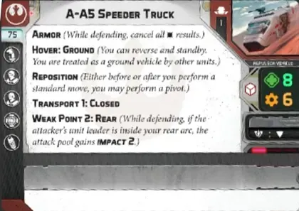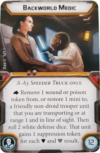This is the one list I'm not completely sure of the upgrades on for the A-A5 and the Officer, but I believe majority of it is here. The bus serves a very unique purpose in this list, being to get Luke into the enemy lines, then carry R2 back out after he scores on Secret Mission.