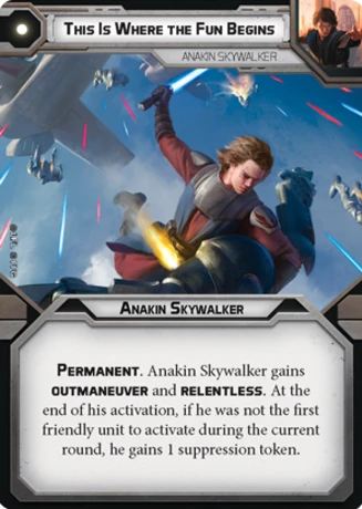 This is a pretty fearsome list. Once Anakin gets plays "This is Where the Fun Begins" he can get 2 relentless attacks a turn with Yoda's guidance. The duo wrecking ball powers up the middle and taking objectives while barcs hit the flanks and set up fire support.